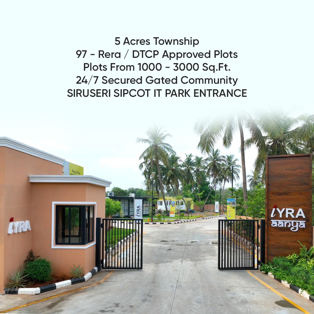 Iyra Aanya is a residential plot by Iyra Properties. This plot is available for sale in Siruseri, Chennai. This project offers plots in various sizes. The minimum plot size is 1000 sq.ft. and the maximum size is 3000 sq.ft. There are 97 units and 5 Acres Gated Community.