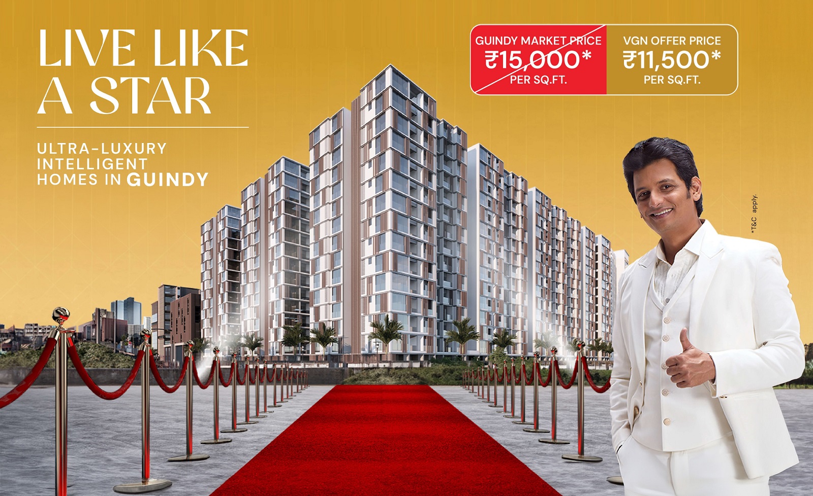 VGN Kensington Towers, located opposite the Hilton Hotel, is a short drive from Kathipara Junction, Guindy, and just 500 metres from the Ekkattuthangal Metro Station. A part of the prime land out of 10.46 acres in the heart of Guindy, is earmarked for VGN Kensington Towers, which are the exclusive Signature Towers offering 14 floors of ultra-luxury 2 and 3 BHK Homes.